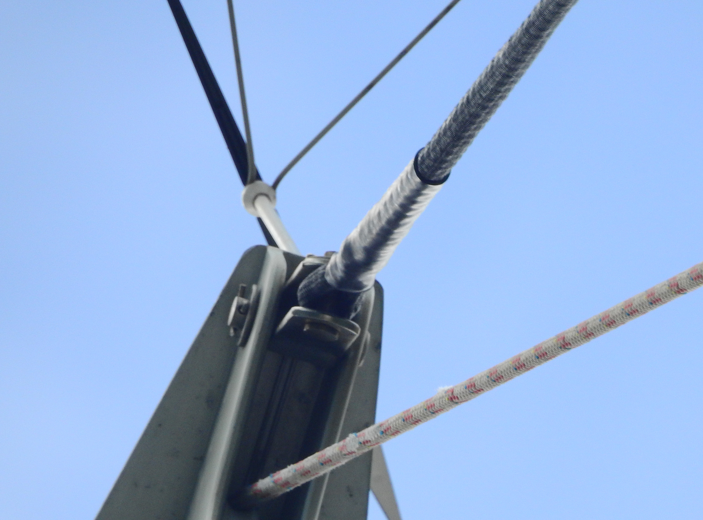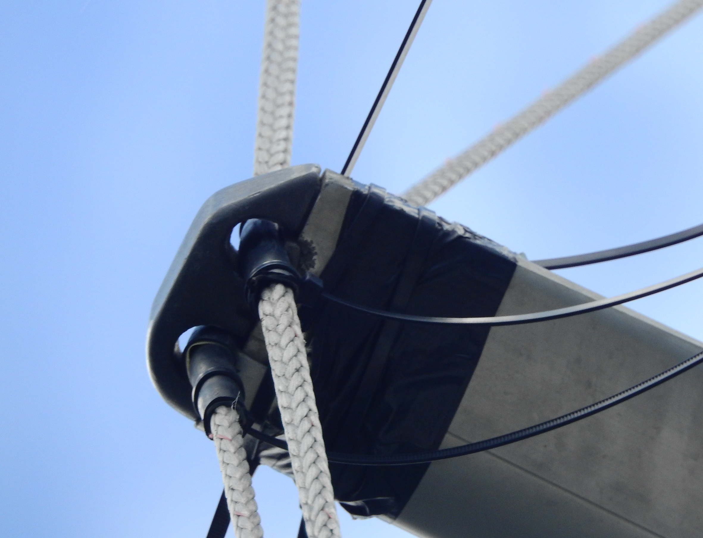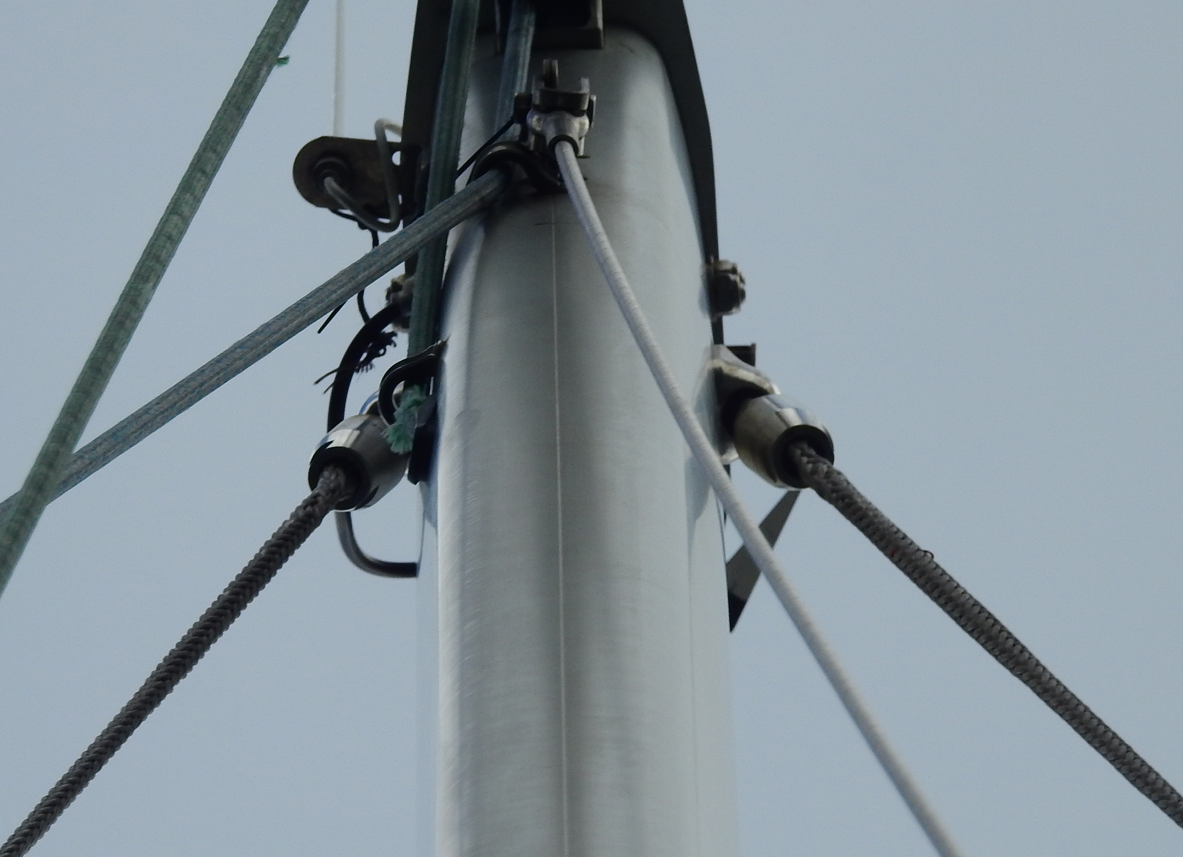 sind die Befestigungen der Oberwamten am Mast Top sichtbar.