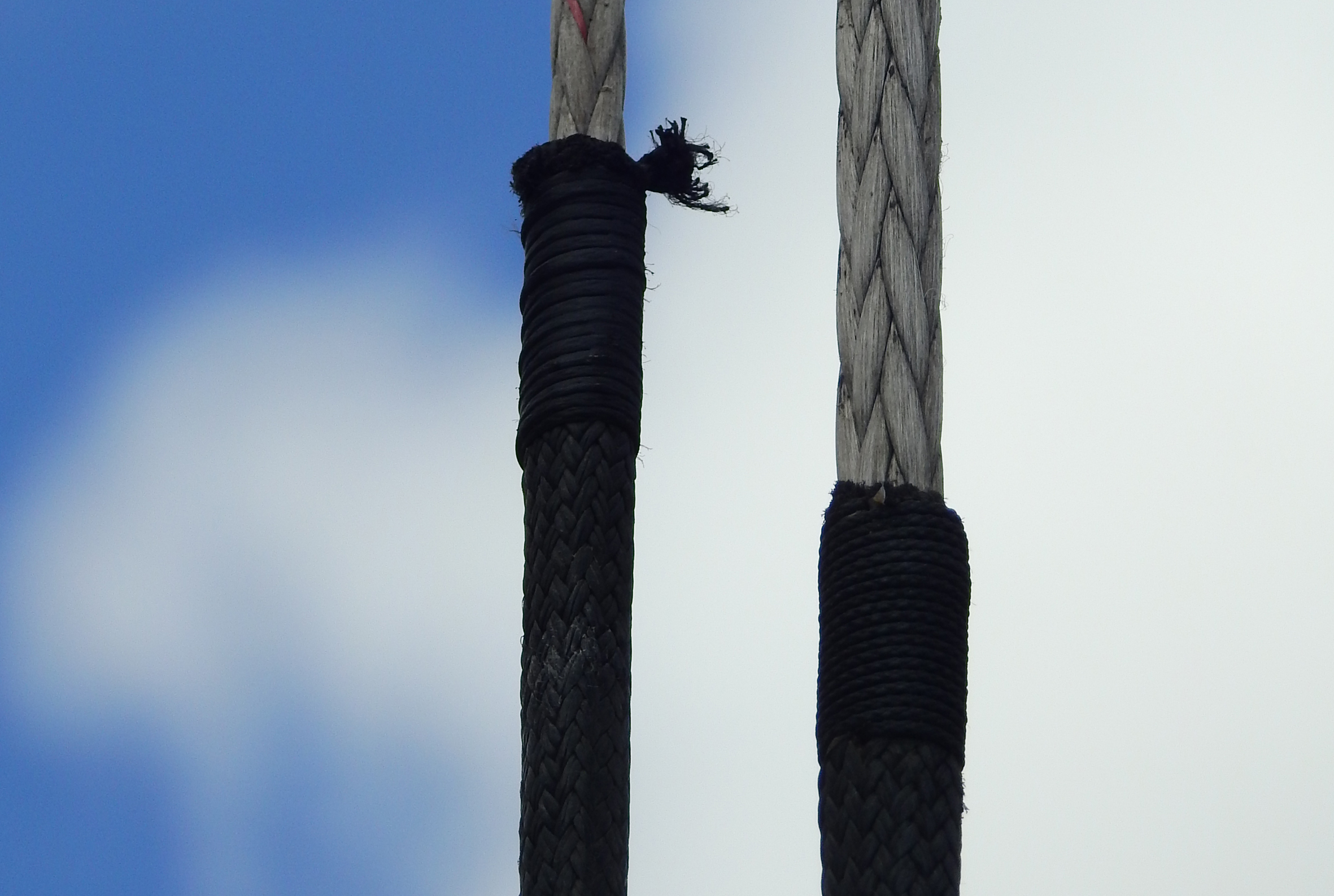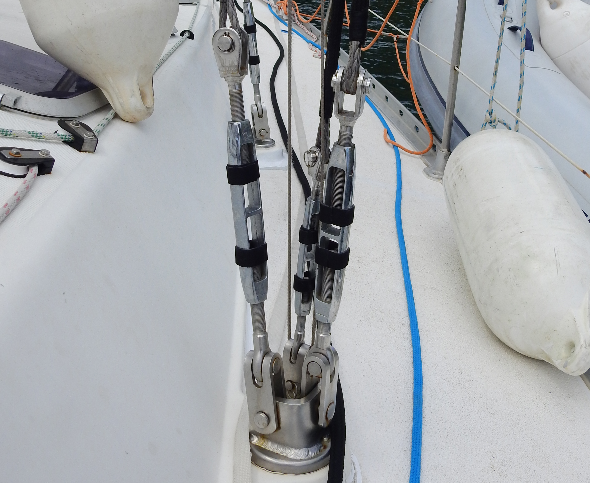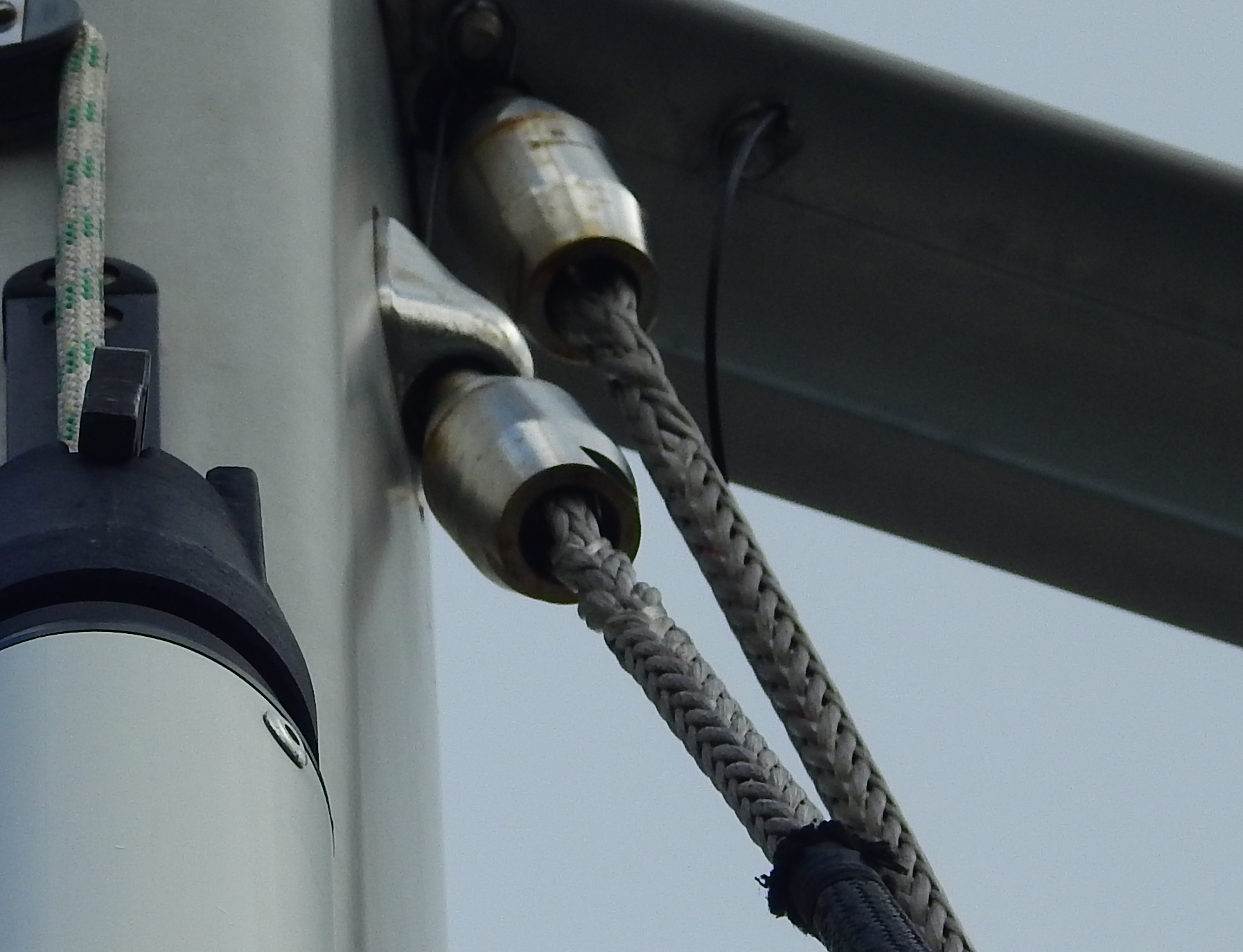 sind die Befestigungen der Oberwamten am Mast Top sichtbar.